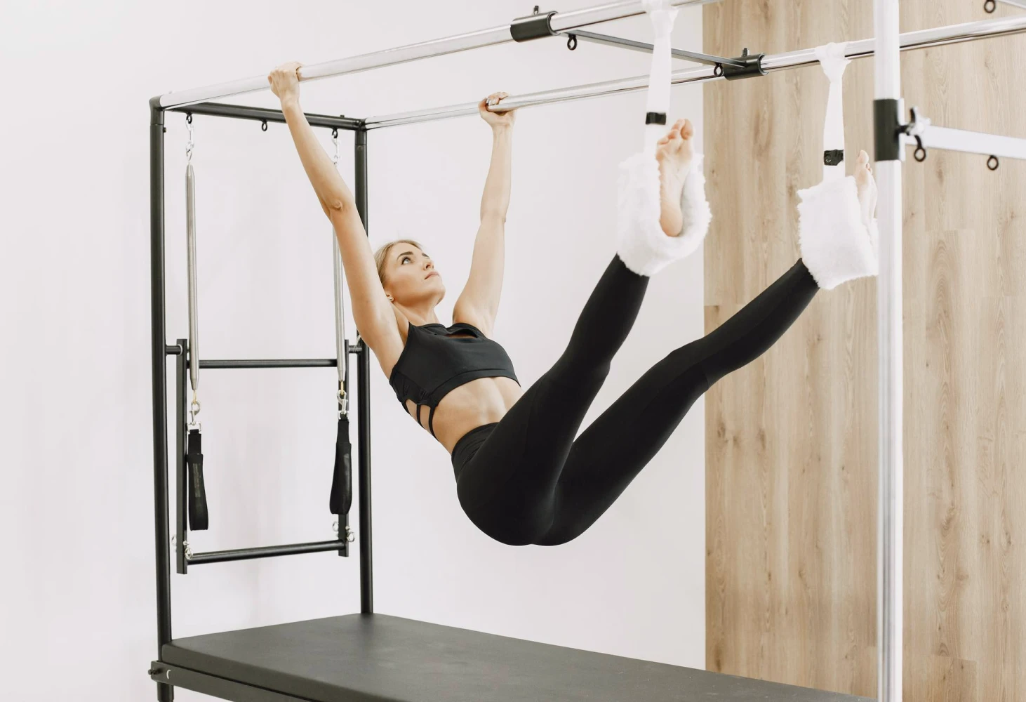Molas, barras e trapézio ajustam-se a qualquer objetivo. O Cadillac permite desde assistência total para iniciantes até desafios extremos para atletas avançados com precisão absoluta.
